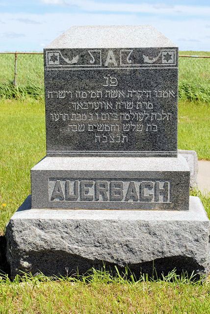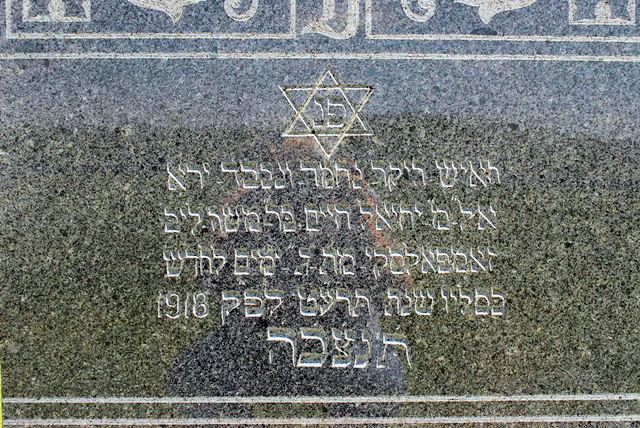 (Here Interred our father the honest and decent man educated in matters of truth Mr. Yisrael Haim son of Moshe Shemuel Auerbach died the fifteenth day of Tamuz 5676 [1916] May his soul be bound in the bond of life)
