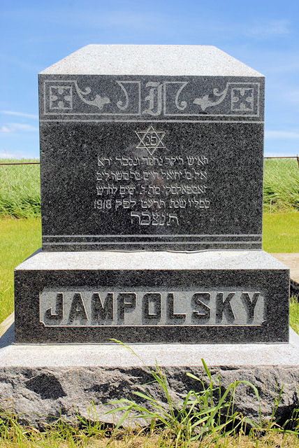 (Here Interred / The dear beloved honored / God-fearing man Yehiel Haim bar Moshe Leib / Zampolsky died 3rd of the month / Kislev year 5679 AH 1918 / May His Soul be Bound Up in the Bond of Life)